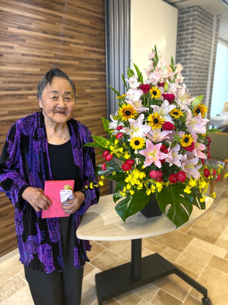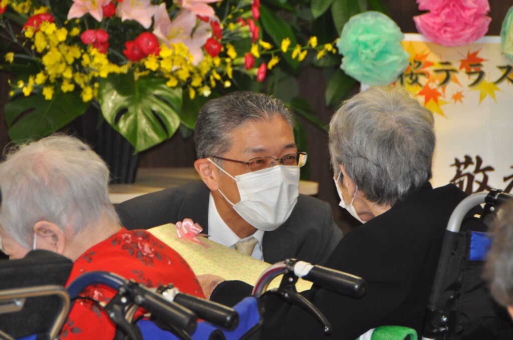 式典では施設長からプレゼントを贈呈し、昼食はお祝い御前で職員とお祝いしました。