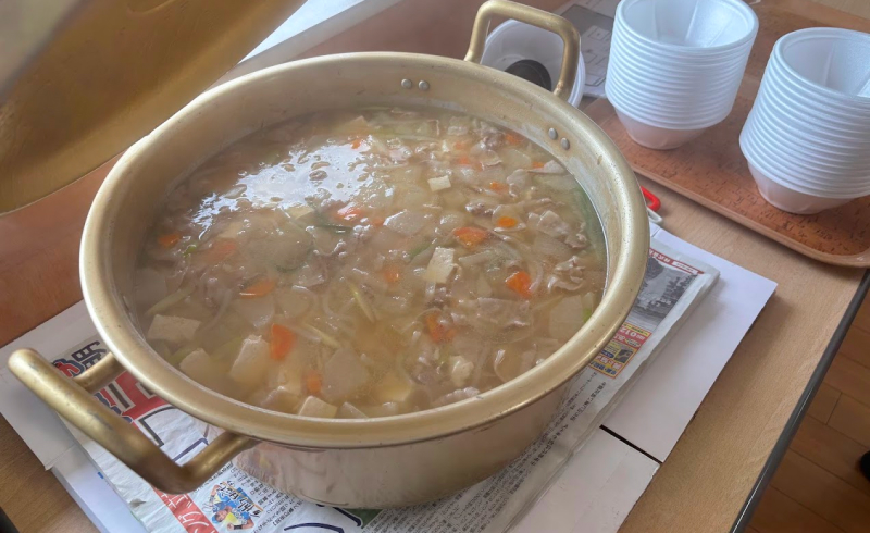 出来上がった豚汁は、参加されたみなさまと職員で美味しくいただきました。